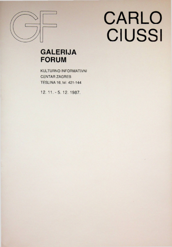 CARLO CIUSSI, Carlo Ciussi, Galerija Forum