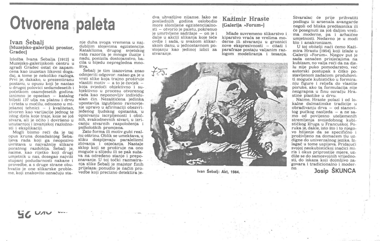 OTVORENA PALETA, Kažimir Hraste, Galerija Forum