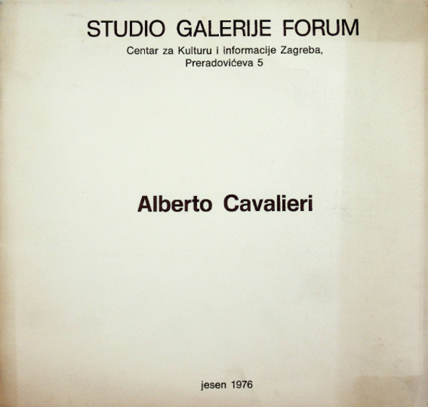 listopad 1976. ALBERTO CAVALIERI, Alberto Cavalieri, Studio Galerije Forum Vrsta dokumenta: Katalog Djelatnost: Izdavaštvo Galerijska djelatnost Studio Galerije Forum, 13. listopada 1976.Autor: Željko SabolKatalog izložbe Alberta Cavalierija koja se održala u Studiu Galerije Forum. Preuzmi dokument