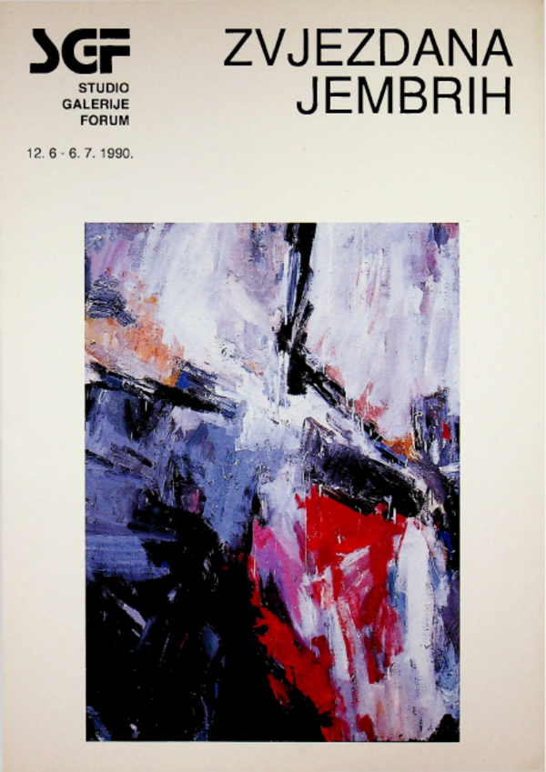 lipanj 1990. ZVJEZDANA JEMBRIH, Zvjezdana Jembrih, Studio Galerije Forum Vrsta dokumenta: Katalog Djelatnost: Izdavaštvo Galerijska djelatnost Studio Galerije Forum, 12. lipnja 1990.Autor: Tomislav LalinKatalog izložbe Zvjezdana Jembrih koja se održala u Studiu Galerije Forum. Preuzmi dokument