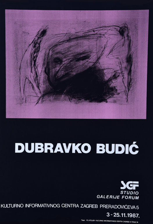 studeni 1987. DUBRAVKO BUDIĆ, Dubravko Budić, Studio Galerije Forum Vrsta dokumenta: Plakat Djelatnost: Izdavaštvo Galerijska djelatnost Autor: Stančin, Ivo Studio Galerije Forum, 03. studenog 1987.Plakat izložbe Dubravka Budić koja je održana u Studiu Galerije Forum.