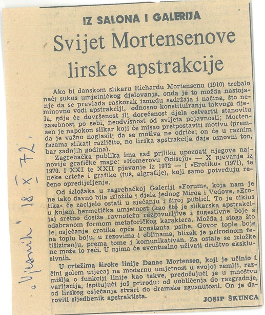 SVIJET MORTENSENOVE LIRSKE APSTRAKCIJE, Josip Škunca, Galerija Forum