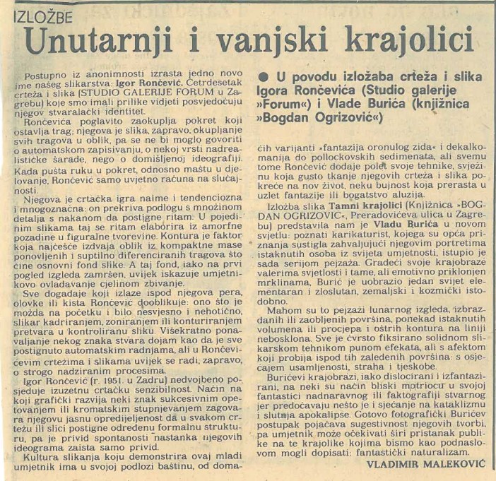 UNUTARNJI I VANJSKI KRAJOLICI, Igor Rončević, Studio Galerija Forum
