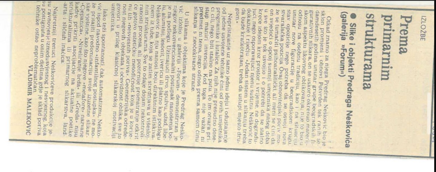 PREMA PRIMARNIM STRUKTURAMA, Predrag Nešković, Galerija Forum