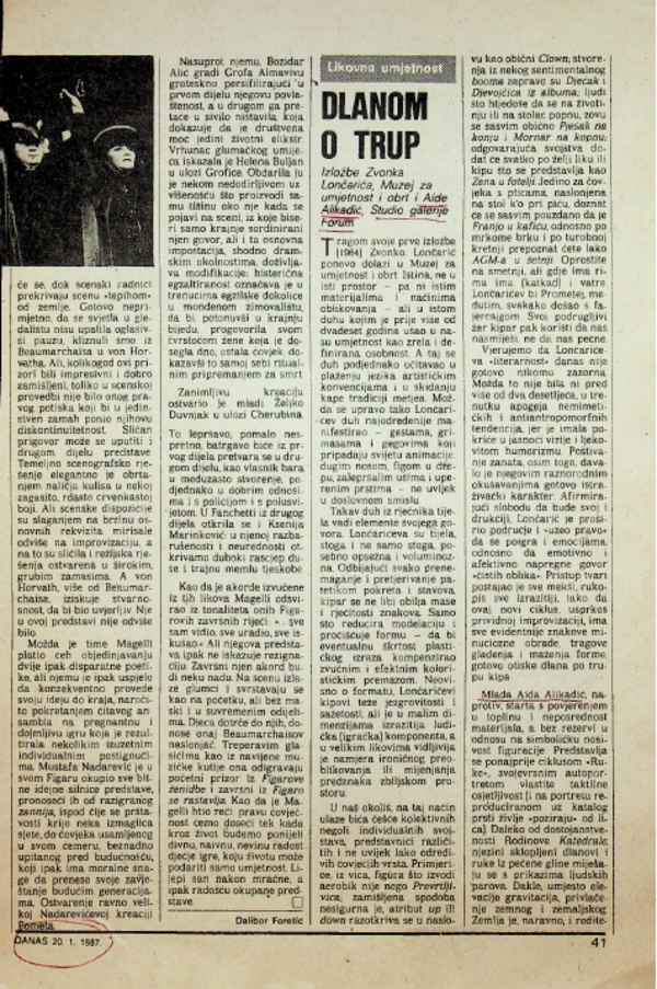 DLANOM O TRUP, Aida Alikadić, Studio Galerije Forum