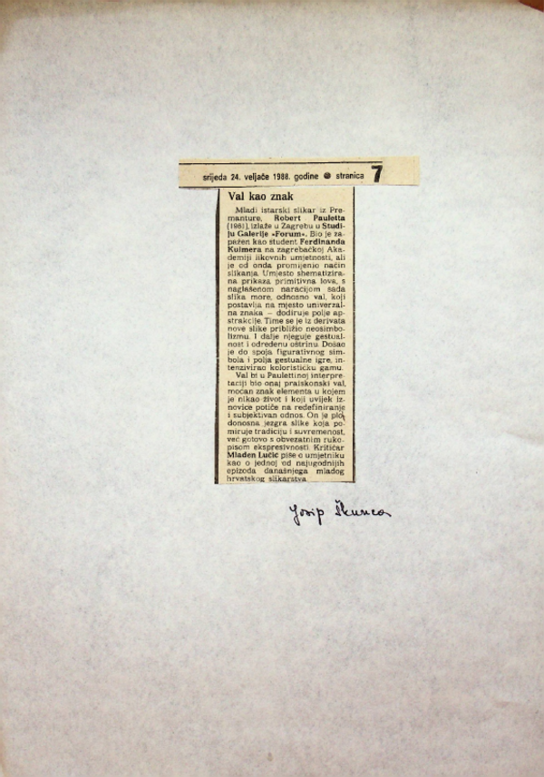 VAL KAO ZNAK, Robert Pauletta, Studio Galerije Forum