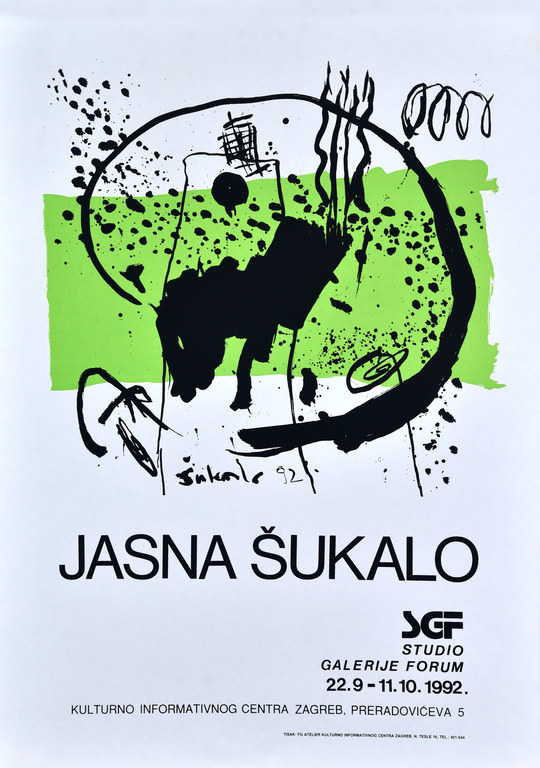 rujan 1992. JASNA ŠUKALO, Jasna Šukalo, Studio Galerije Forum Vrsta dokumenta: Plakat Djelatnost: Izdavaštvo Galerijska djelatnost Autor: Stančin, Ivo Studio Galerije Forum, 22. rujna 1992.Plakat izložbe Jasne Šukalo koja je održana u Studiu Galerije Forum.