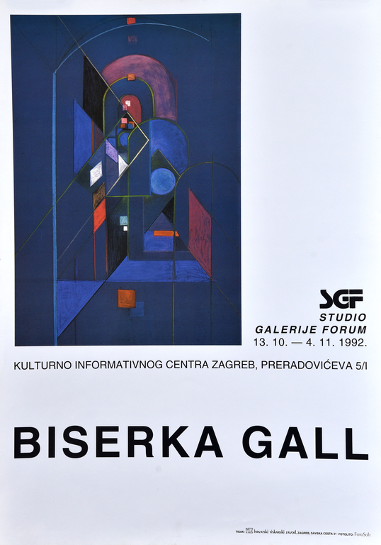 listopad 1992. BISERKA GALL, Biserka Gall, Studio Galerije Forum Vrsta dokumenta: Plakat Djelatnost: Izdavaštvo Galerijska djelatnost Autor: Stančin, Ivo Studio Galerije Forum, 13. listopada 1992.Plakat izložbe Biserke Galla koja je održana u Studiu Galerije Forum.