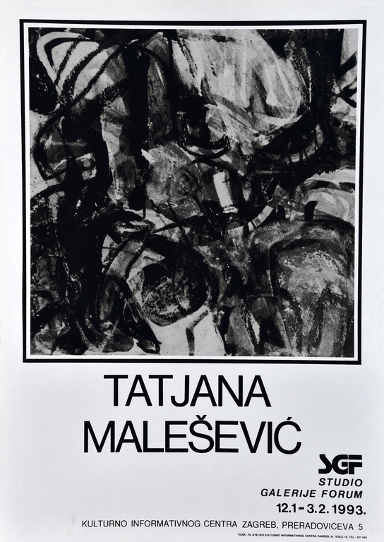 siječanj 1993. TATJANA MALEŠEVIĆ, Tatjana Malešević, Studio Galerije Forum Vrsta dokumenta: Plakat Djelatnost: Izdavaštvo Galerijska djelatnost Autor: Stančin, Ivo Studio Galerije Forum, 12. siječnja 1993.Plakat izložbe Tatjane Malešević koja je održana u Studiu Galerije Forum.
