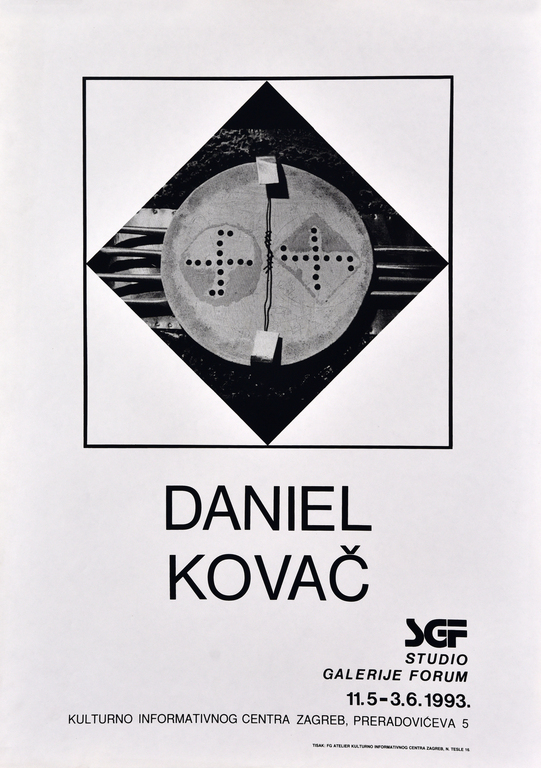 svibanj 1993. DANIEL KOVAČ, Daniel Kovač, Studio Galerije Forum Vrsta dokumenta: Plakat Djelatnost: Izdavaštvo Galerijska djelatnost Autor: Stančin, Ivo Studio Galerije Forum, 11. svibnja 1993.Plakat izložbe Daniela Kovač koja je održana u Studiu Galerije Forum.