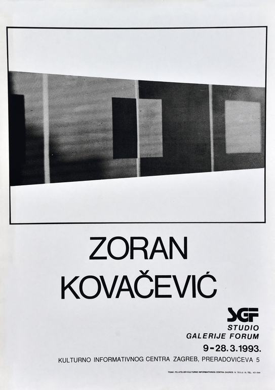 ožujak 1993. ZORAN KOVAČEVIĆ, Zoran Kovačević, Studio Galerije Forum Vrsta dokumenta: Plakat Djelatnost: Izdavaštvo Galerijska djelatnost Autor: Stančin, Ivo Studio Galerije Forum, 09. ožujka 1993.Plakat izložbe Zorana Kovačević koja je održana u Studiu Galerije Forum.
