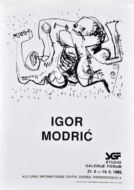 travanj 1992. IGOR MODRIĆ, Igor Modrić, Studio Galerije Forum Vrsta dokumenta: Plakat Djelatnost: Izdavaštvo Galerijska djelatnost Autor: Stančin, Ivo Studio Galerije Forum, 21. travnja 1992.Plakat izložbe Igora Modrića koja je održana u Studiu Galerije Forum.