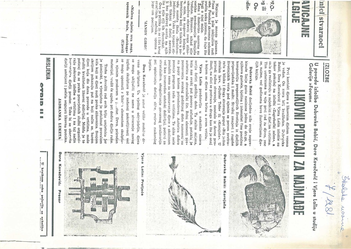 3 IZLOŽBE DORE KOVAČEVIĆ, DUBRAVKE BABIĆ I VJERE LALIN, Grupna izložba, Galerija Forum siječanj 1981.