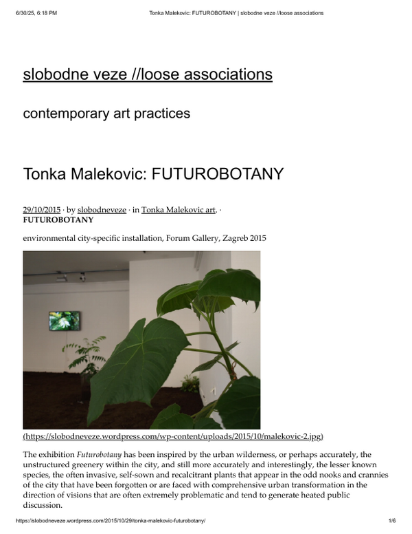 IZLOŽBA FUTUROBOTANIKA, Tonka Maleković, Galerija Forum