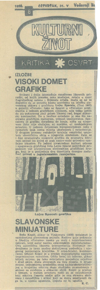 VISOKI DOMET GRAFIKE, Lojze Spacal i Božo Kopić, Galerija Forum