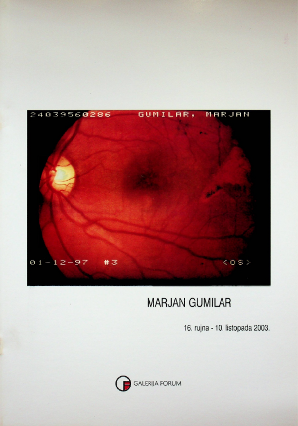rujan 2003. MARJAN GUMILAR, Marjan Gumilar, Galerija Forum Vrsta dokumenta: Katalog Djelatnost: Izdavaštvo Galerijska djelatnost Galerija Forum, 16. rujna 2003.Autor: Milan BešlićKatalog izložbe Marjana Gumilara koje se održala u Galeriji Forum. Preuzmi dokument
