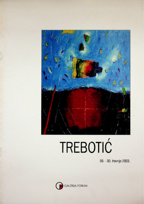 travanj 2003. TREBOTIĆ, Matko Trebotić, Galerija Forum Vrsta dokumenta: Katalog Djelatnost: Izdavaštvo Galerijska djelatnost Galerija Forum, 09. travnja 2003.Autor: Milan BešlićKatalog izložbe Matka Trebotića koje se održala u Galeriji Forum. Preuzmi dokument
