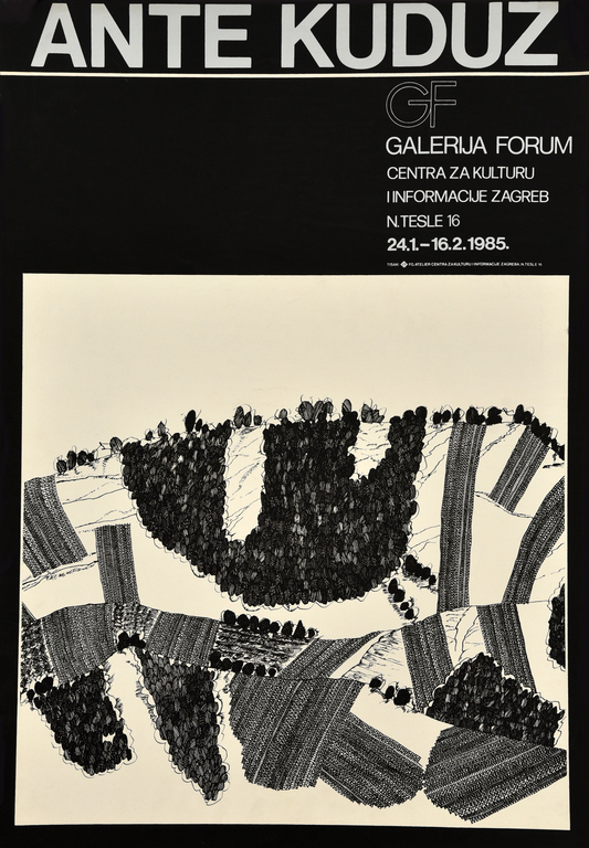 siječanj 1985. ANTE KUDUZ, Ante Kuduz, Galerija Forum Vrsta dokumenta: Plakat Djelatnost: Izdavaštvo Galerijska djelatnost Autor: Stančin, Ivo Galerija Forum, 24. siječnja 1985.Izložba Ante Kuduza koja se održala u Galeriji Forum.