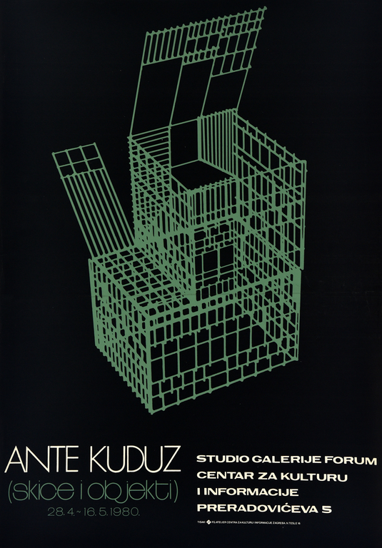 travanj 1980. ANTE KUDUZ, Ante Kuduz, Studio Galerije Forum Vrsta dokumenta: Plakat Djelatnost: Izdavaštvo Galerijska djelatnost Autor: Stančin, Ivo Studio Galerije Forum, 28. travnja 1980.Plakat izložbe Ante Kuduza koja je održana u Studiu Galerije Forum.
