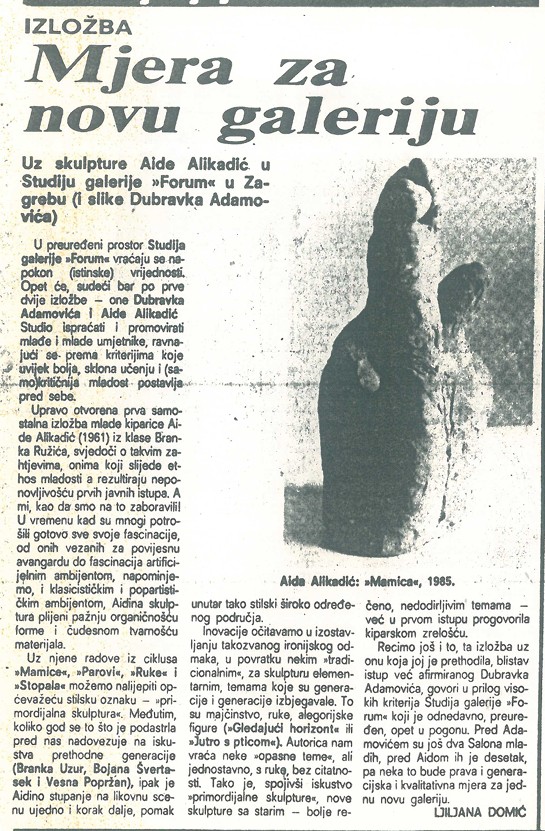 MJERA ZA NOVU GALERIJU, Aida Alikadić, Studio Galerije Forum