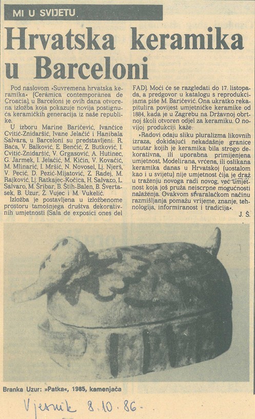 HRVTASKA KERAMIKA U BARCELONI, Suvremena hrvatska keramika, Barcelona