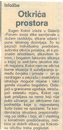 OTKRIĆA PROSTORA, Eugen Kokot, Galerija Forum