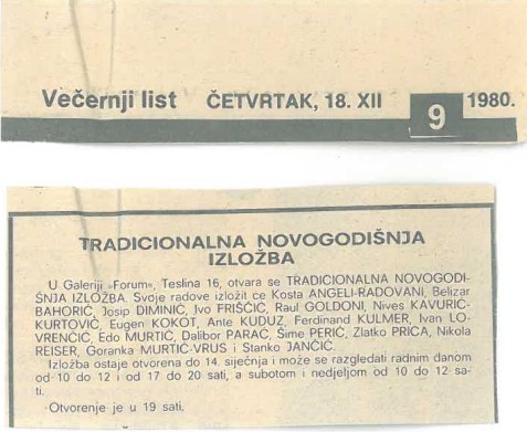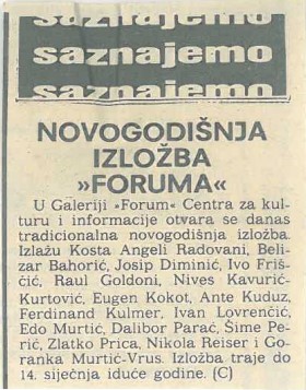 NOVOGODIŠNJA IZLOŽBA FORUMA, Grupna izložba, Galerija Forum