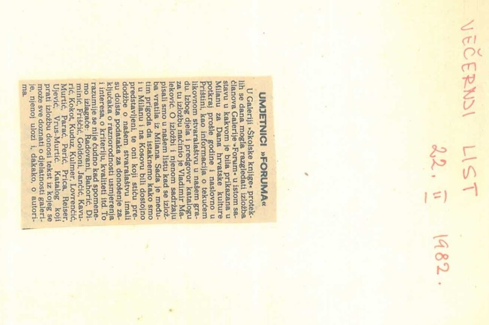 "FORUMOVCI" U MILANU, Grupna Izložba, Galerija Forum