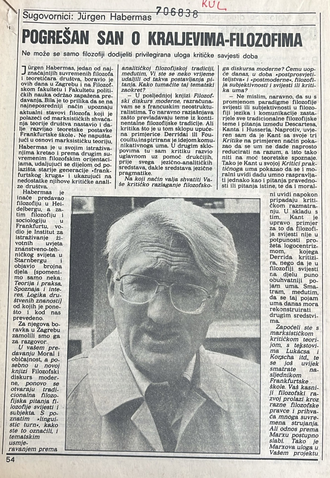 POGREŠAN SAN O KRALJEVIMA-FILOZOFIMA, INTERVJU, tjednik DANAS
