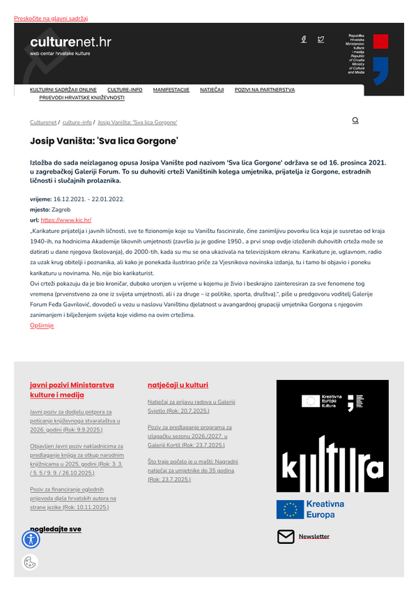 SVA LICA GORGONE, Josip Vaništa, Galerija Forum