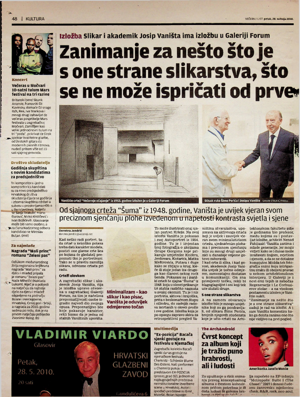 VANIŠTA JE UVIJEK VJERAN SVOM PRECIZNOM SJENCANJU PLOHE, Josip Vaništa, Galerija Forum