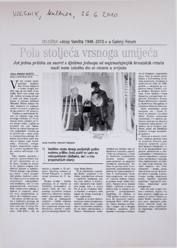 POLA STOLJEĆA VRSNOGA UMIJEĆA, Josip Vaništa, Galerija Forum
