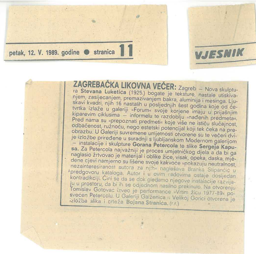 O LIKOVNOJ UMJETNOSTI, Vlado Gotovac, Galerija Forum