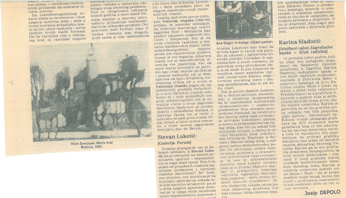 ZAGREBAČKA LIKOVNA VEČER, Stevan Luketić, Galerija Forum