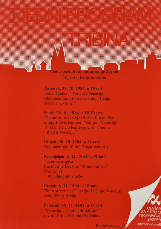 Reprodukcije iz knjige "Centar za kulturu i informacije 1964–1984" svjedoče o prvih 20 godina djelovanja KIC-a, tijekom kojih je Centar organizirao više od tisuću manifestacija i ugostio brojne domaće i strane umjetnike, intelektualce i kulturne djelatnike. KIC se u tom razdoblju afirmirao kao važno mjesto međunarodne kulturne razmjene i javnog dijaloga u Zagrebu. Knjiga je dostupna u cijelosti na stranici arhiva.